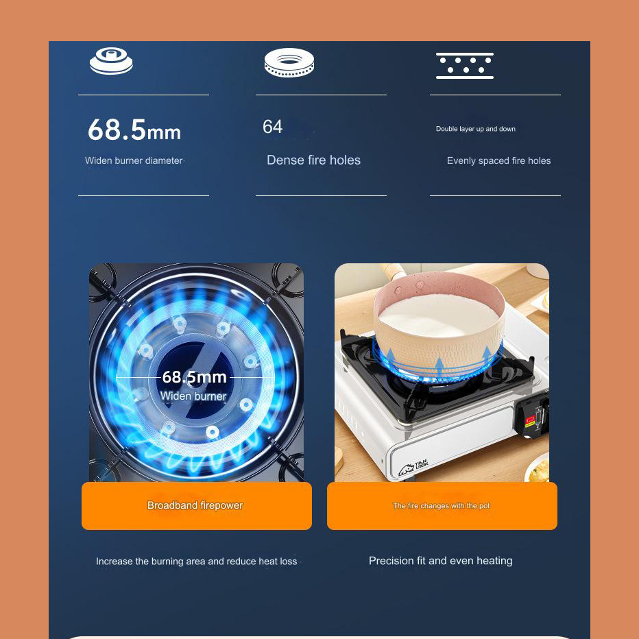 اجاق گاز کمپینگ تک شعله Tanlook مدل HW-1110 ترکیبی از قدرت و قابلیت حمل است. مجهز به قطر شعله 68.5 میلی متری و سوراخ های متراکم خروج شعله گرمای ثابتی را برای آماده‌سازی سریع غذا ارائه می‌کند. این محصول اطمینان می‌دهد که زمان کمتری برای پخت و پز و زمان بیشتری برای لذت بردن از فضای باز صرف می‌کنید. اندازه جمع و جور و ساختار سبک آن باعث می شود که بدون زحمت قابل حمل باشد و در هر کوله پشتی یا صندوق عقب خودرو بدون کاهش عملکرد پخت و پز قرار گیرد. سادگی با عملکرد اجاق گاز قابل حمل Tanlook مطابقت دارد. با ویژگی‌های کاربر پسند مانند سیستم احتراق آسان، کنترل‌های حرارتی قابل تنظیم 4 حالته، قدرت 2000W و حدود 1.5 کیلوگرم وزن کارایی آن قابل تحسین است. این محصول این امکان را به شما می‌دهد که بدون دردسر کار کنید. طراحی بصری تنظیم و تمیز کردن سریع اجاق گاز کمپینگ را تضمین می کند و زمان بیشتری را برای لذت بردن از آشپزی در فضای باز با دوستان و خانواده فراهم می کند. طبیعت‌گردان و علاقه‌مندان به سفرهای کمپینگ به دلیل شرایط خاصی که هنگام سفر تجربه می‌کنند، نیاز به استفاده از ابزاری در حجم و اندازه کوچک و سبک، اما بادوام و مستحکم دارند. اجاق گاز کمپ تنلوک با وزن و ابعادی بسیار مناسب مختص افرادیست که در طبیعت گردی، کمپینگ یا مسافرت نیاز به استفاده از سرشعله‌ای مرغوب و مقاوم دارند.
